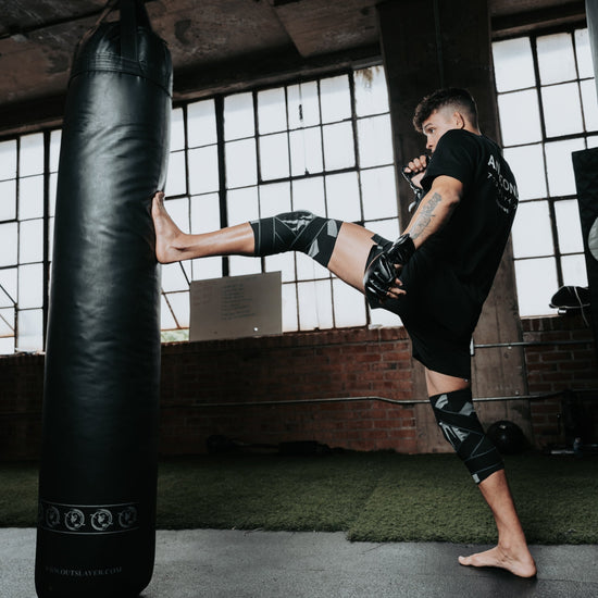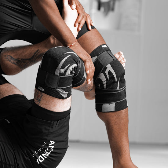 Most knee braces end up sliding down or falling off completely in the middle of rounds.